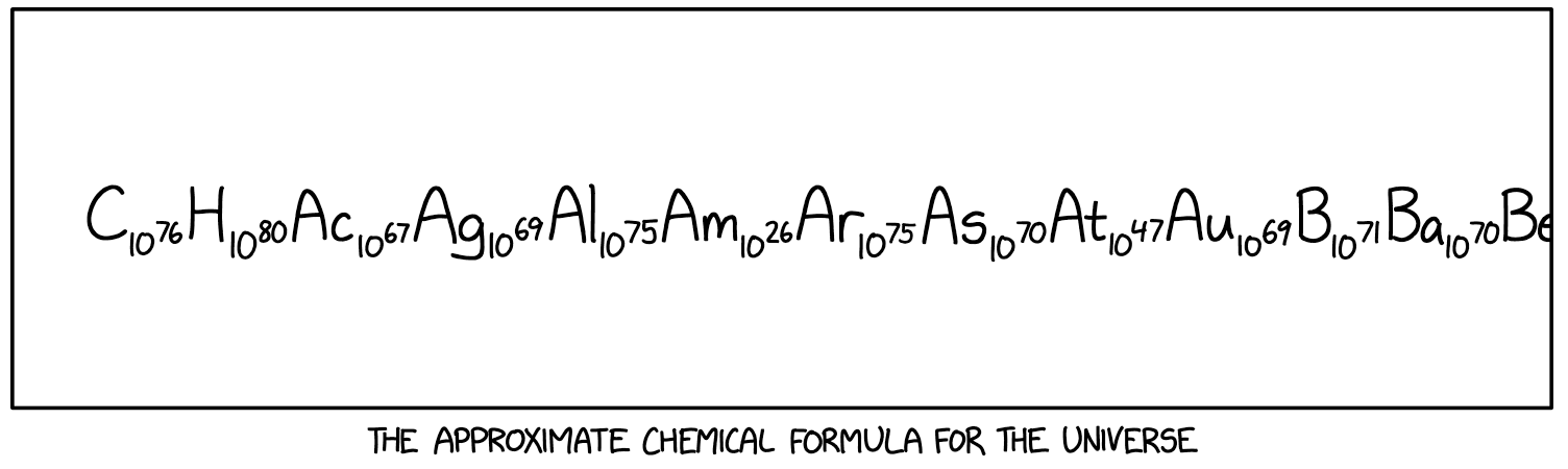 From xkcd, The Approximate Chemical Formula of the (Observable) Universe: