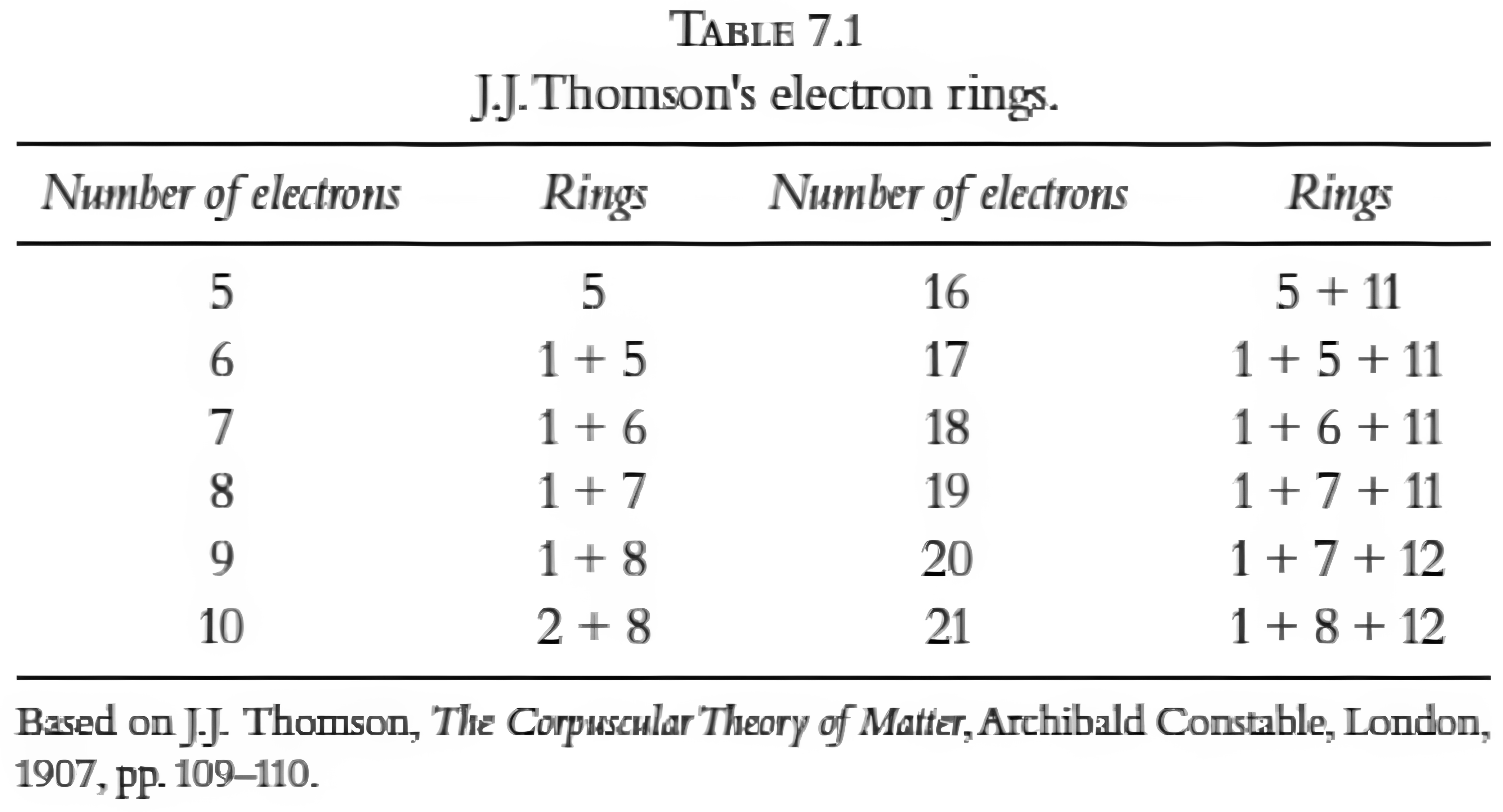 This arrangement is by Catalán. The electrons indicated in column two that are connected by braces have approximately the same binding energy. Consequently, for some elements one type of electron is preferred over another in the normal configuration, as for example, Cr, Cb, Pd, La, Ac, Th.