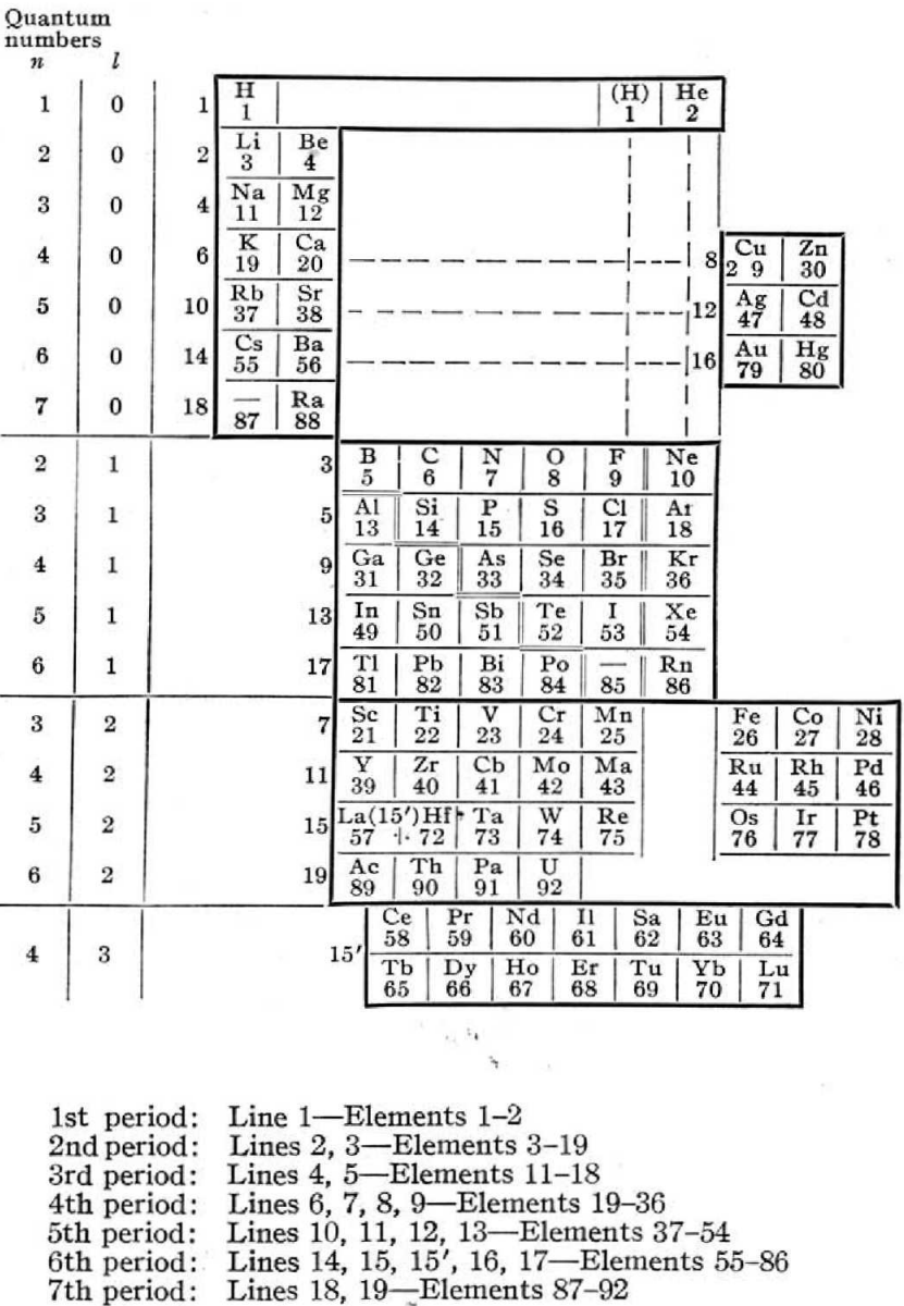 - 1922 Niels Bohr’s PT has Nt (86) as the last inert gas