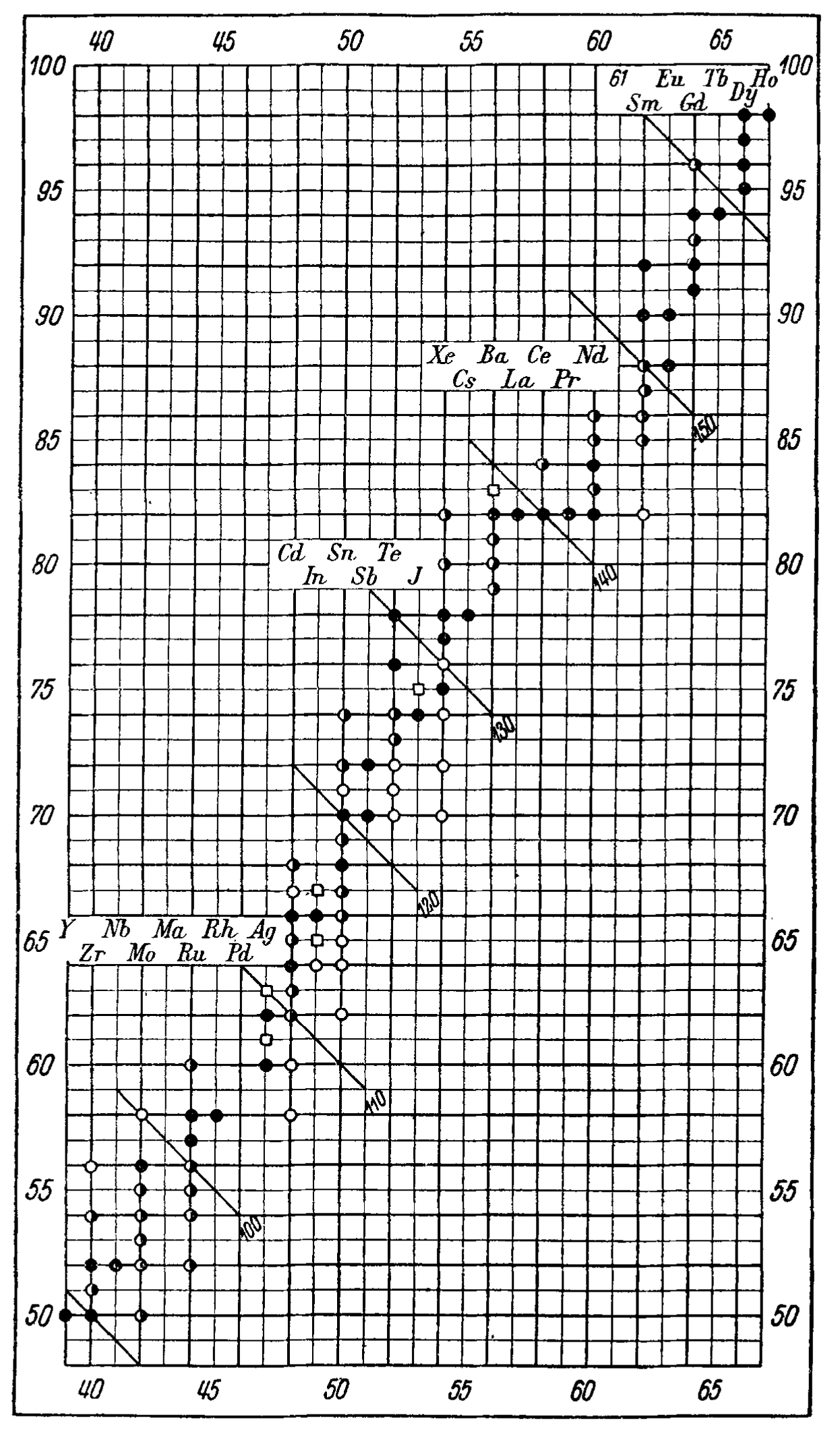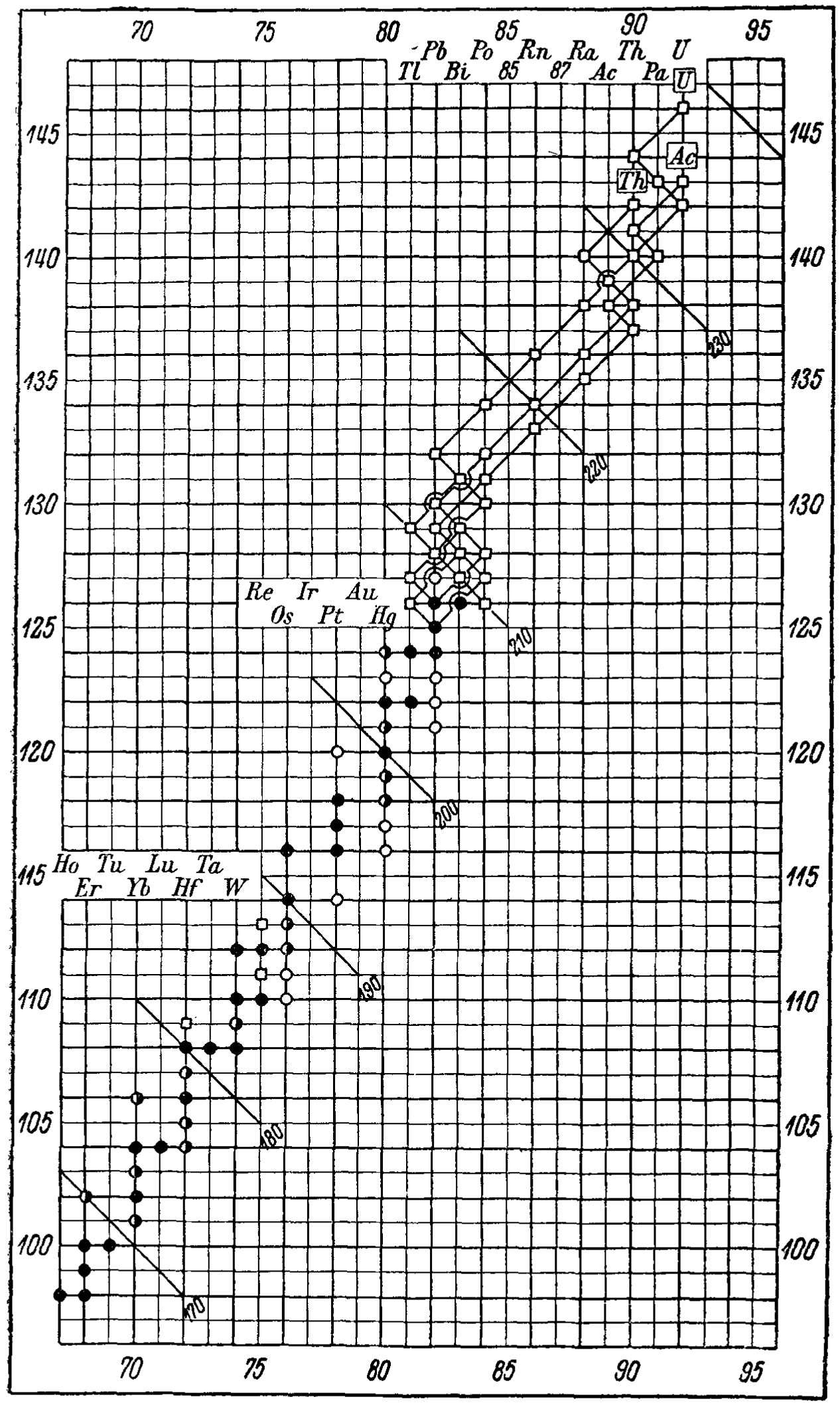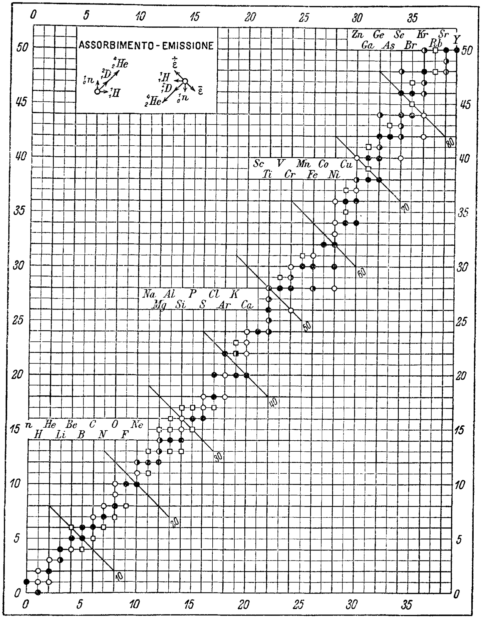 "An extensive bibliography of the works consulted for the compilation of the tables follows, as well as a table representing, in the neutron-proton diagram, what is known about stable and radioactive isotopes."