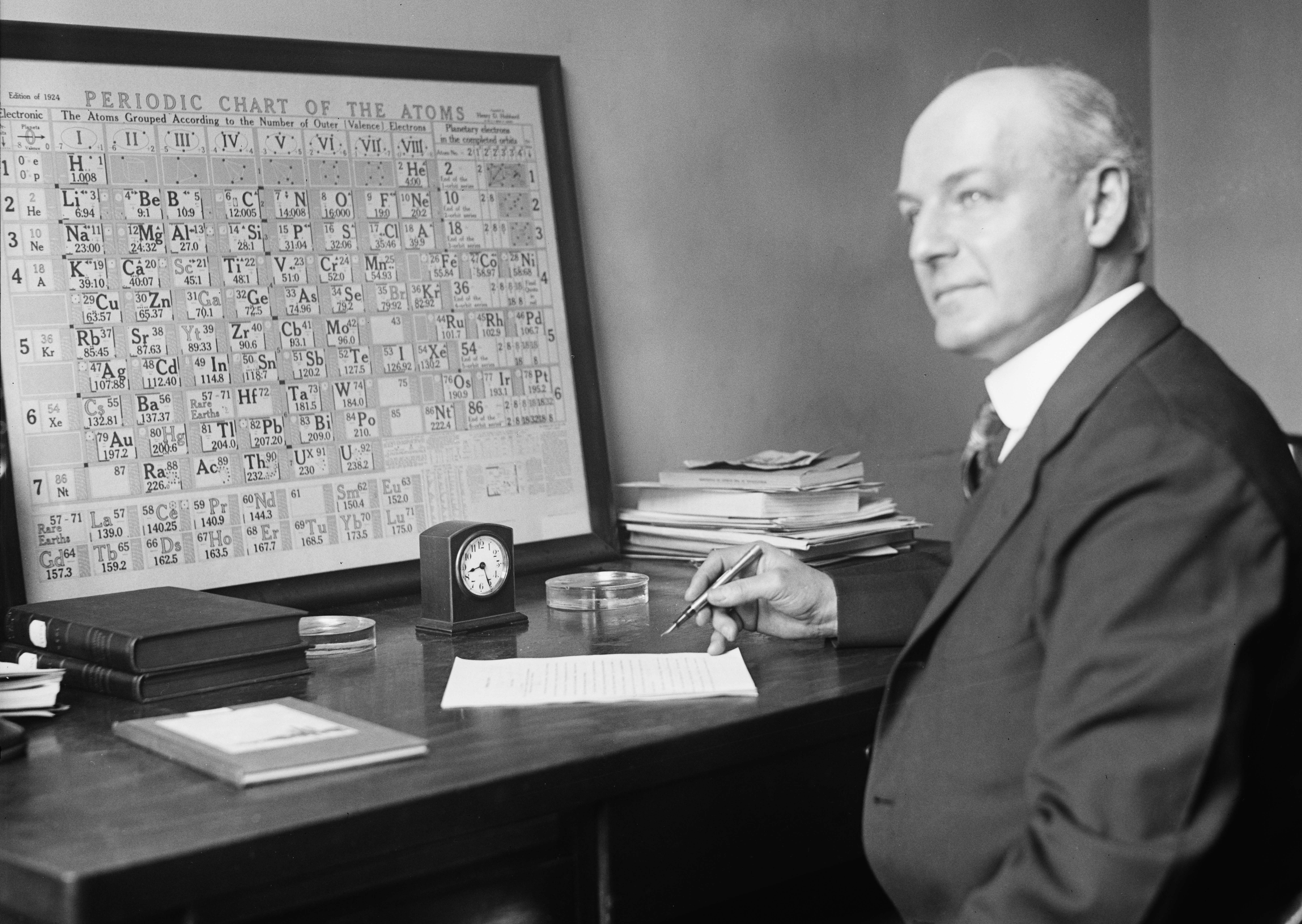 Henry D. Hubbard in front of his 1924 periodic table from wikimedia: